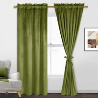 Jiuzhen Moss Green Velvet Curtains 72 Inches For Living Room - Privacy Protect Room Darkening Rod Pocket Thick Velvet Window Dra