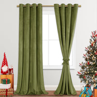 Jiuzhen Moss Green Velvet Curtains 90 Inches Blackout Curtains For Living Room - Thermal Insualted Room Darkening Grommet Thick