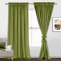 Jiuzhen Moss Green Velvet Curtains 90 Inches For Living Room - Privacy Protect Room Darkening Rod Pocket Thick Velvet Window Dra