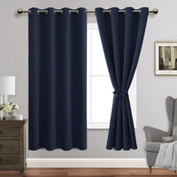 Jiuzhen Navy Blackout Curtains With Tiebacks-Thermal Insulated, Light Blocking/Noise Reducing Grommet Curtain Drapes For Bedroom And Living Room, Set Of 2 Window Curtain Panels, 52 X 63 Inch Length