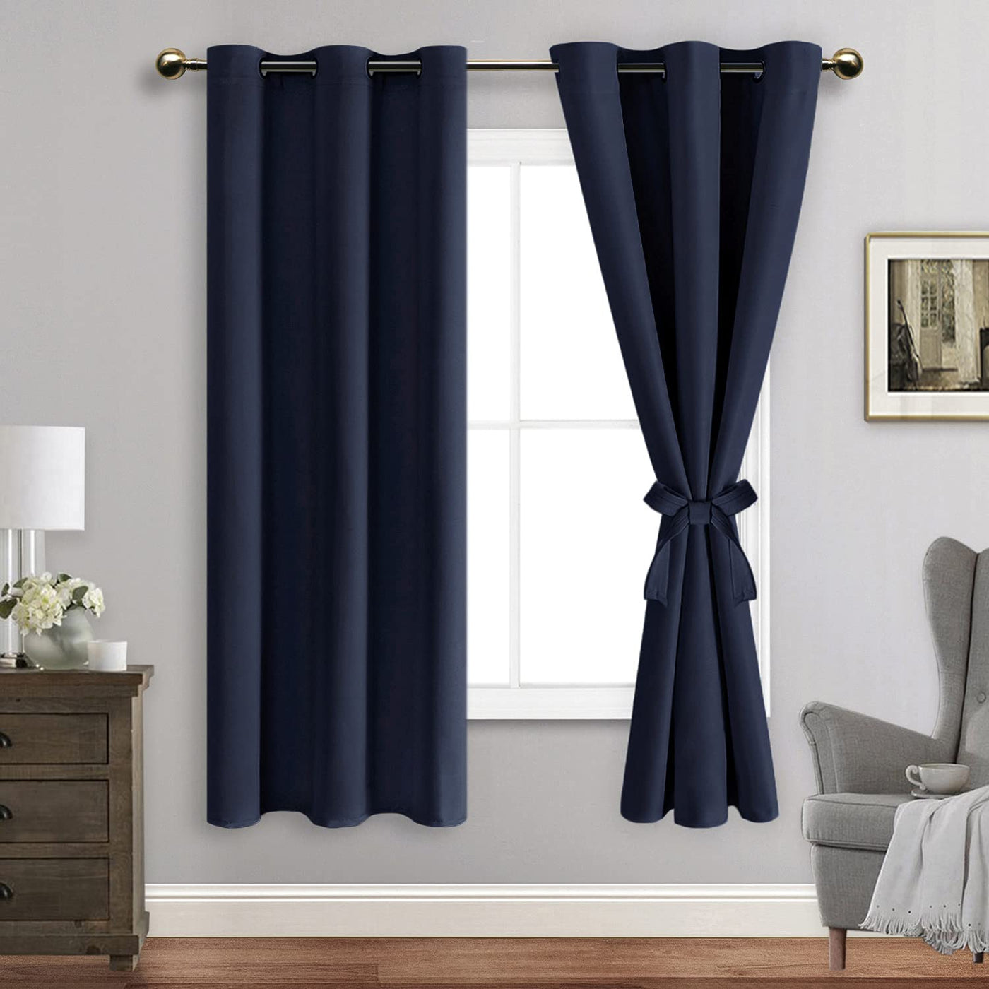 Jiuzhen Navy Blackout Curtains With Tiebacks - Thermal Insulated, Light Blocking/Noise Reducing Grommet Curtain Drapes For Bedroom/Living Room, Set Of 2 Window Curtain Panels, 42 X 63 Inch Length