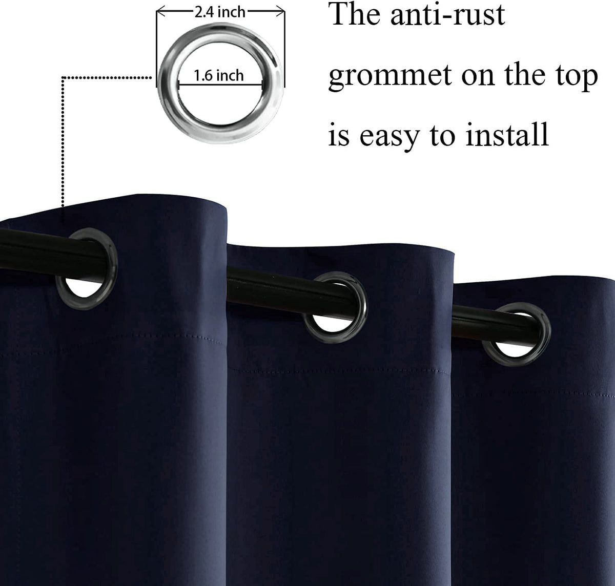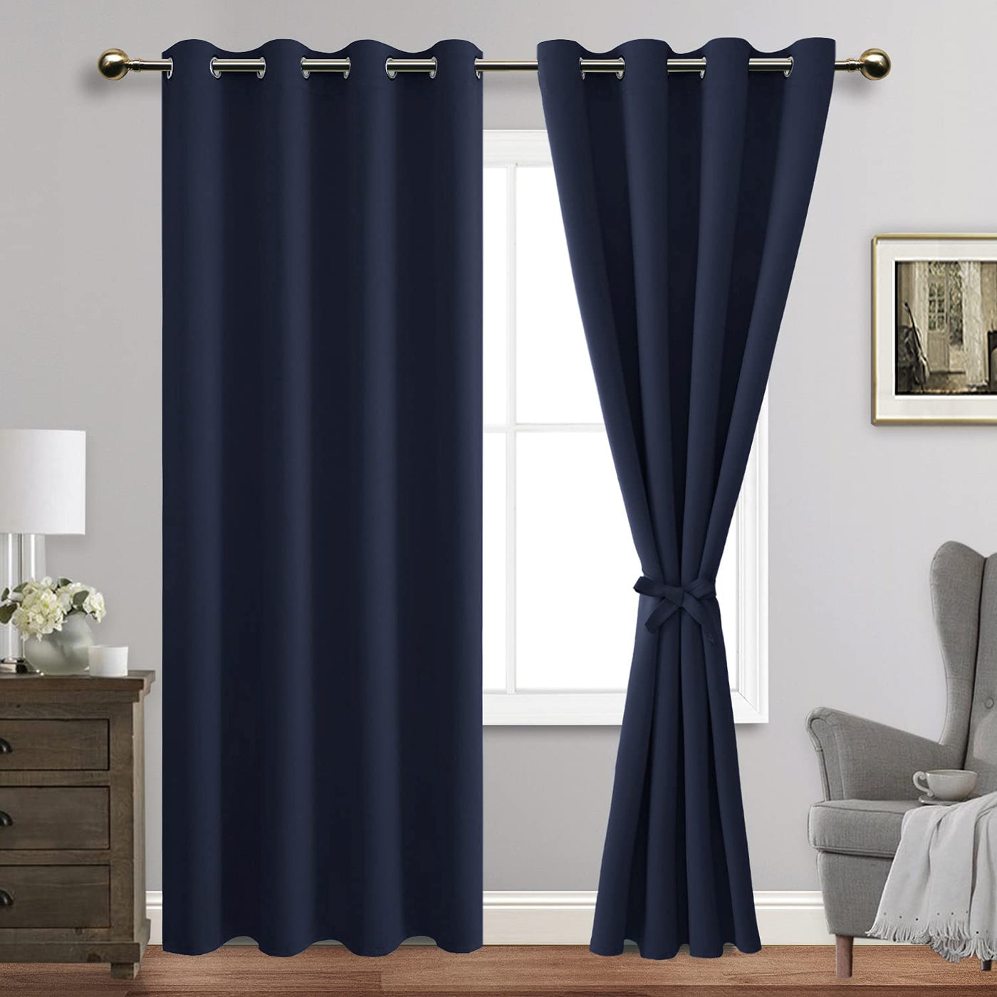 Jiuzhen Navy Blackout Curtains With Tiebacks-Thermal Insulated, Light Blocking/Noise Reducing Grommet Curtain Drapes For Bedroom/Living Room, Set Of 2 Window Curtain Panels, 52 X 84 Inch Length