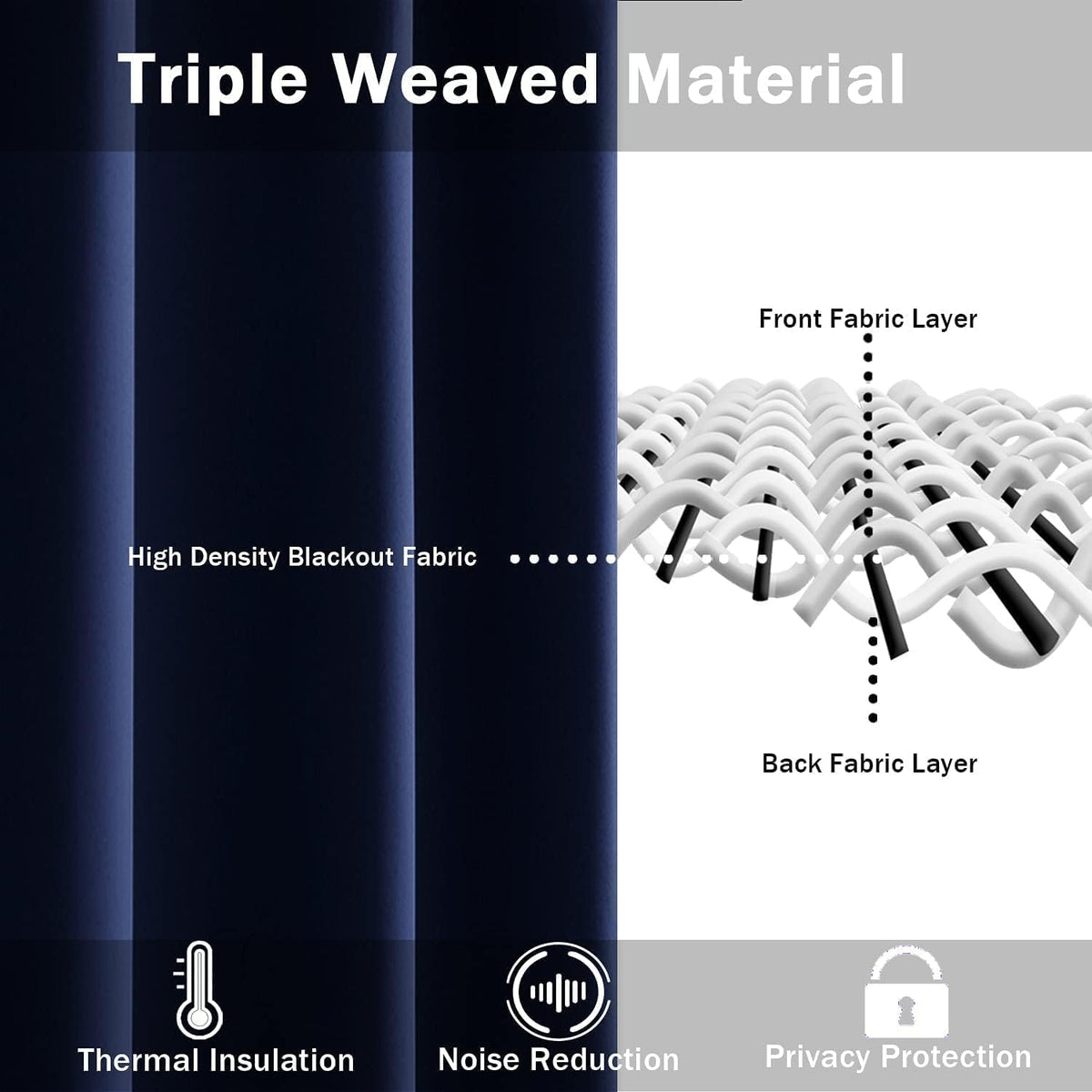Thermal Insulated & Energy Saving Curtain: Triple weaved technology helps block most of sunlights, Keep you away from the light.
