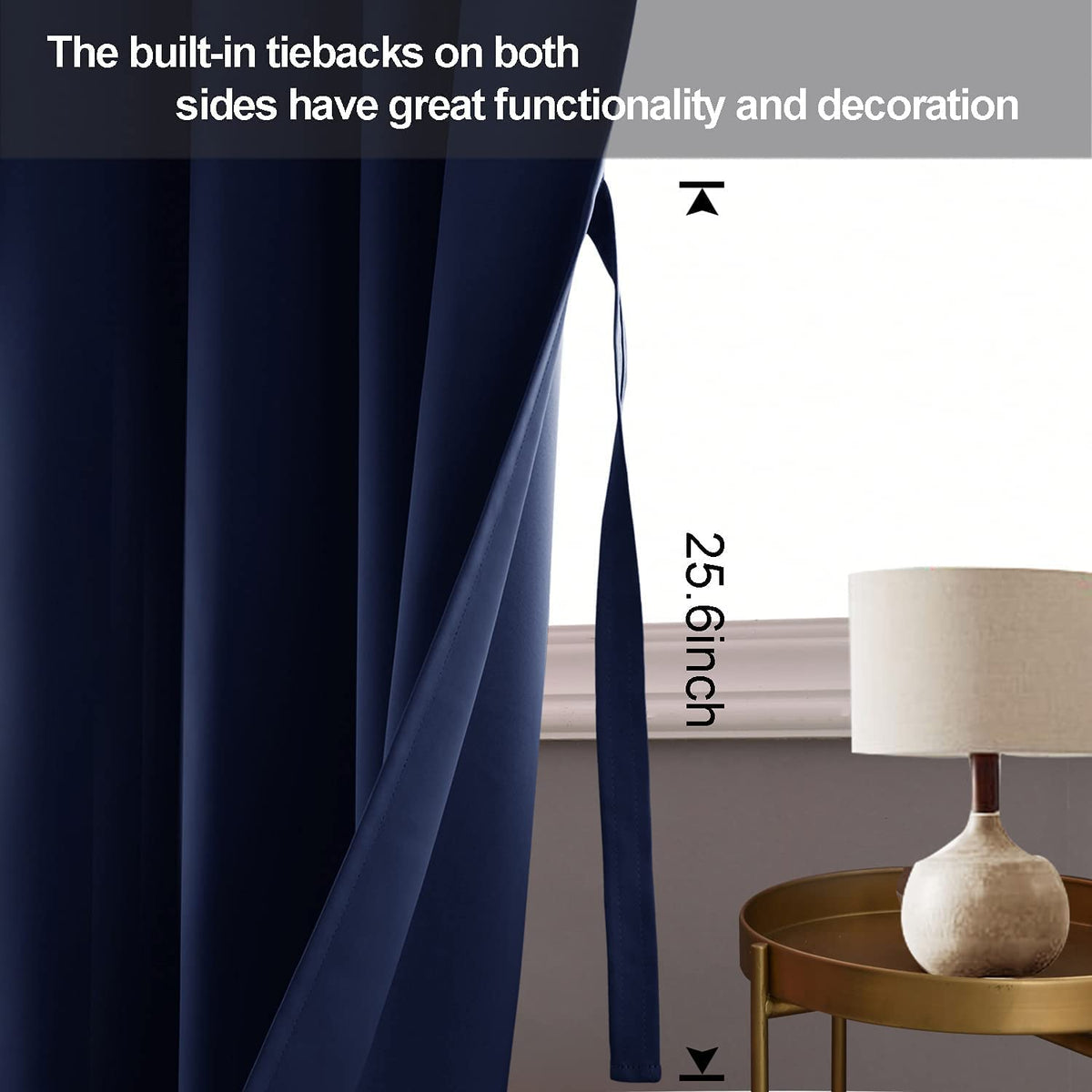 Jiuzhen Navy Blue Blackout Curtains With Tiebacks Thermal Insulated, Light Blocking And Noise Reducing Grommet Curtains For Bedroom And Living Room, Set Of 2 Window Curtain Panels, 42 X 72 Inch Length