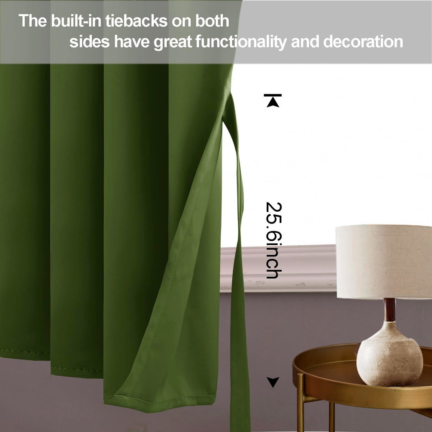 JIUZHEN Blackout Curtains with Tiebacks are made of premium quality triple weaved microfiber blackout fabric which can block most of harmful sunlights and UV rays. Our room darkening curtains adopt an innovative design. The tiebacks are stitched to the curtains and combined with the curtains, thereby reducing your additional cost of purchasing tiebacks and eliminating the trouble that you sometimes cannot find tiebacks.