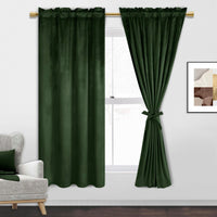 Jiuzhen Oliver Green Velvet Curtains 63 Inches For Living Room - Soft Retro Blackout Velvet Drapes Rod Pocket Room Darkening The