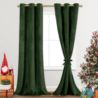 Jiuzhen Oliver Green Velvet Curtains 84 Inches For Living Room - Thermal Insualted Room Darkening Grommet Thick Velvet Window Dr
