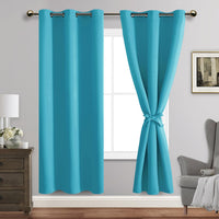 Jiuzhen Peacock Blue Blackout Curtains With Tiebacks Thermal Insulated, Light Blocking And Noise Reducing Grommet Curtains For And Living Room, Set Of 2 Window Curtain Panels, 42 X 72 Inch Length