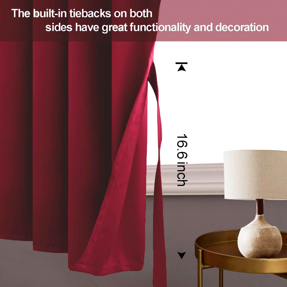 Jiuzhen Red Blackout Curtains With Tiebacks - Thermal Insulated, Light Blocking And Noise Reducing Grommet Curtains For Bedroom And Living Room, Set Of 2 Window Curtain Panels, 34 X 24 Inch Length