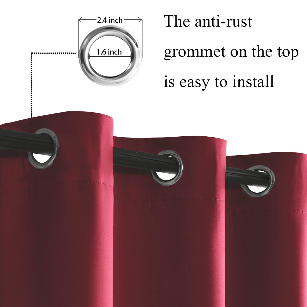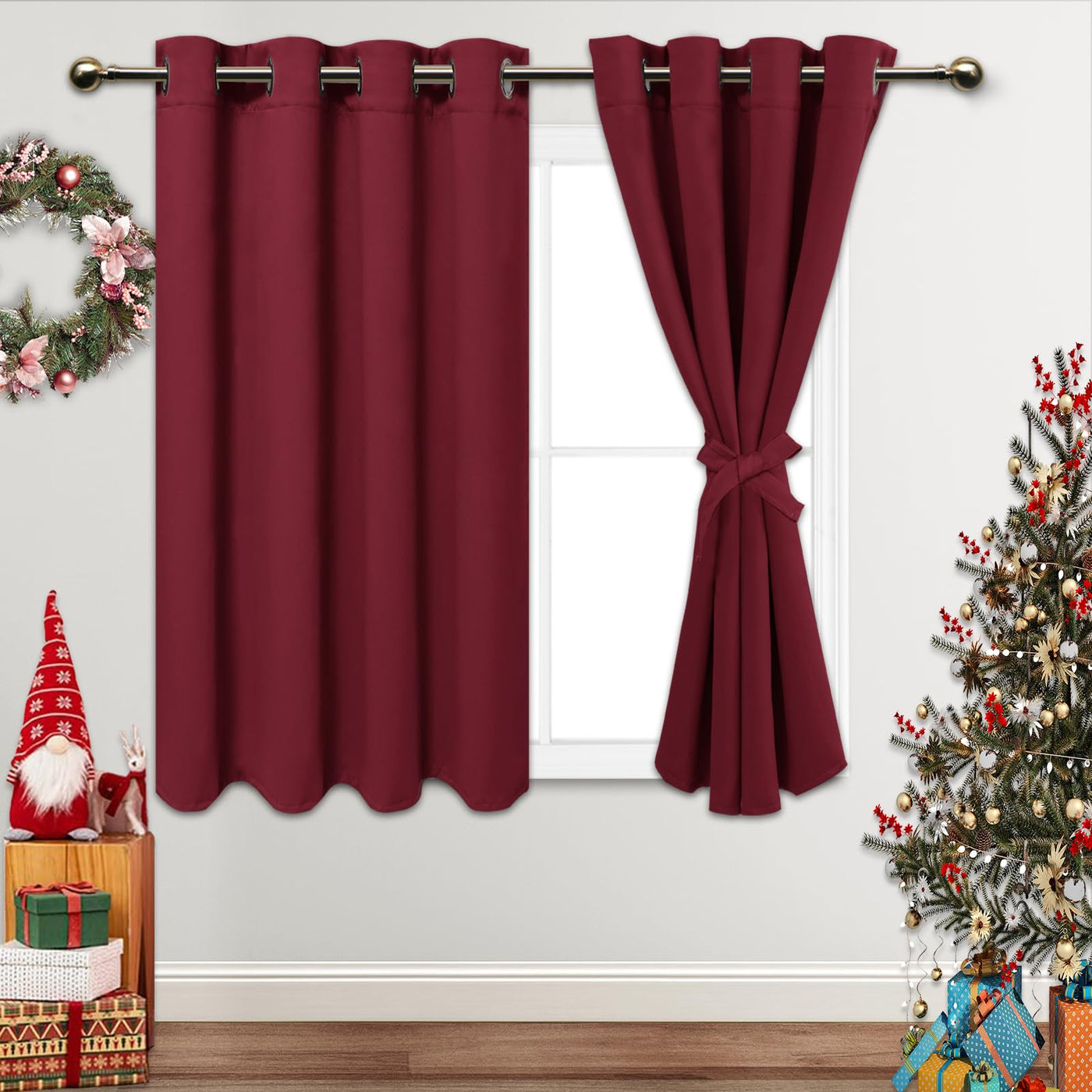 Jiuzhen Red Blackout Curtains With Tiebacks - Thermal Insulated, Light Blocking And Noise Reducing Grommet Curtains For Bedroom And Living Room, Set Of 2 Window Curtain Panels, 52 X 45 Inch Length