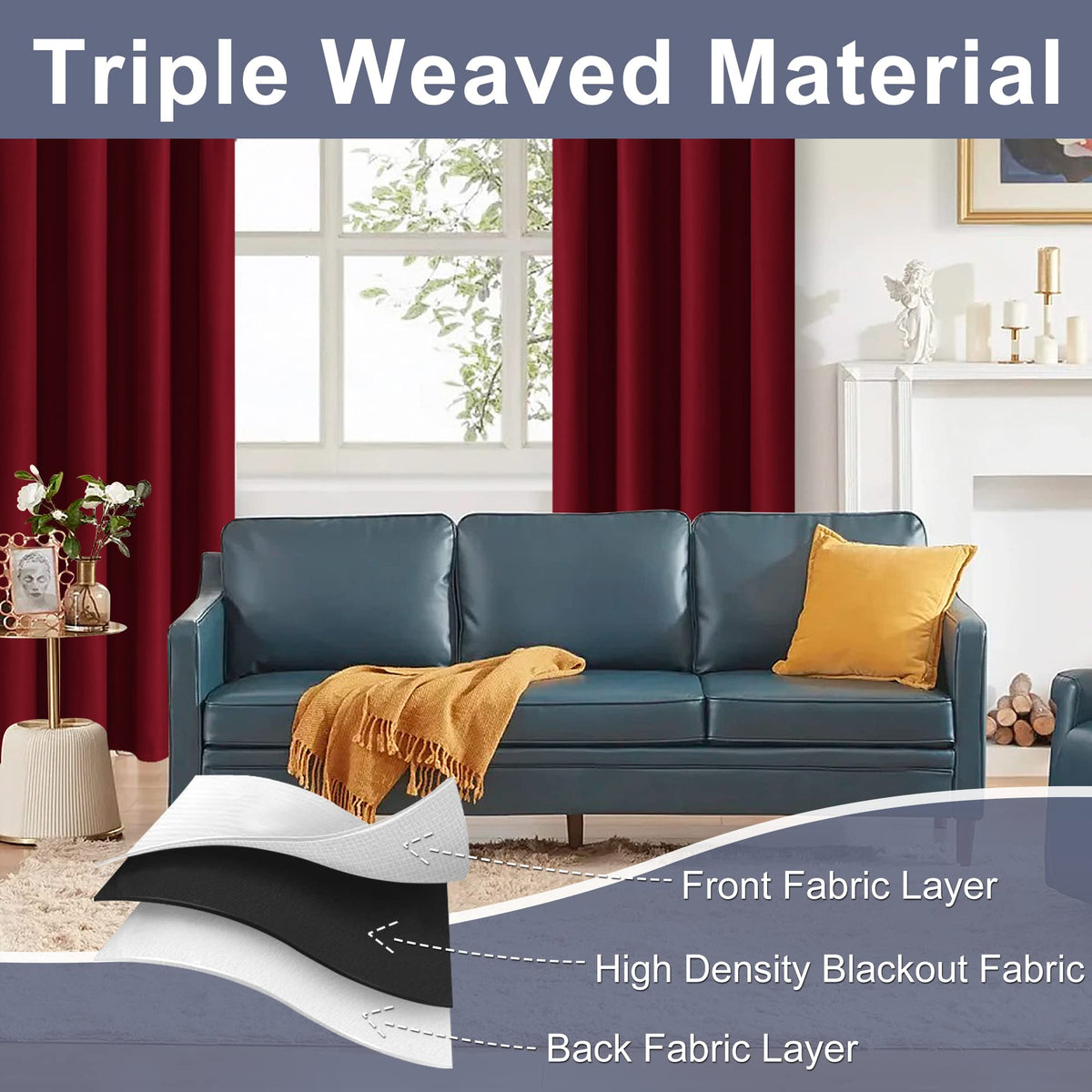JIUZHEN Blackout Curtains with unique integrated tiebacks, crafted from premium triple-weaved microfiber blackout fabric. This exceptional material not only blocks harmful sunlight and UV rays, but also guarantees a dark and cozy ambiance in your room, perfect for those seeking a deep and undisturbed sleep.