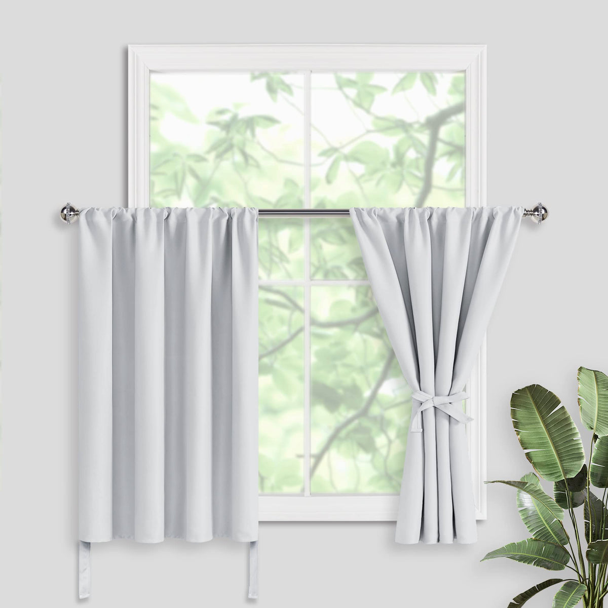 Jiuzhen Short Blackout Curtains For Small Window - Cafe Room Darkening Privacy Energy Saving Window Curtains Tiers For Bathroom,Kitchen, W 42 X L 30, Set Of 2 Panels With Tiebacks, Greyish White