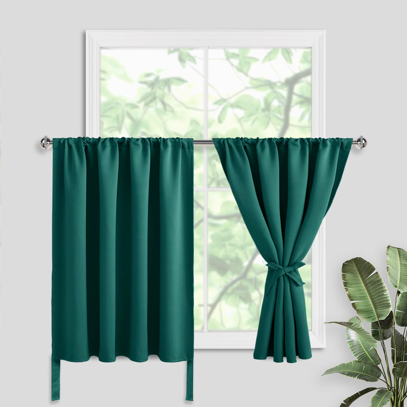 Jiuzhen Short Blackout Curtains For Small Window - Cafe Room Darkening Privacy Thermal Half Window Curtains Tiers For Bathroom,Kitchen, W 52 X L 36 Inch, Set Of 2 Panels With Tiebacks, Forest Green