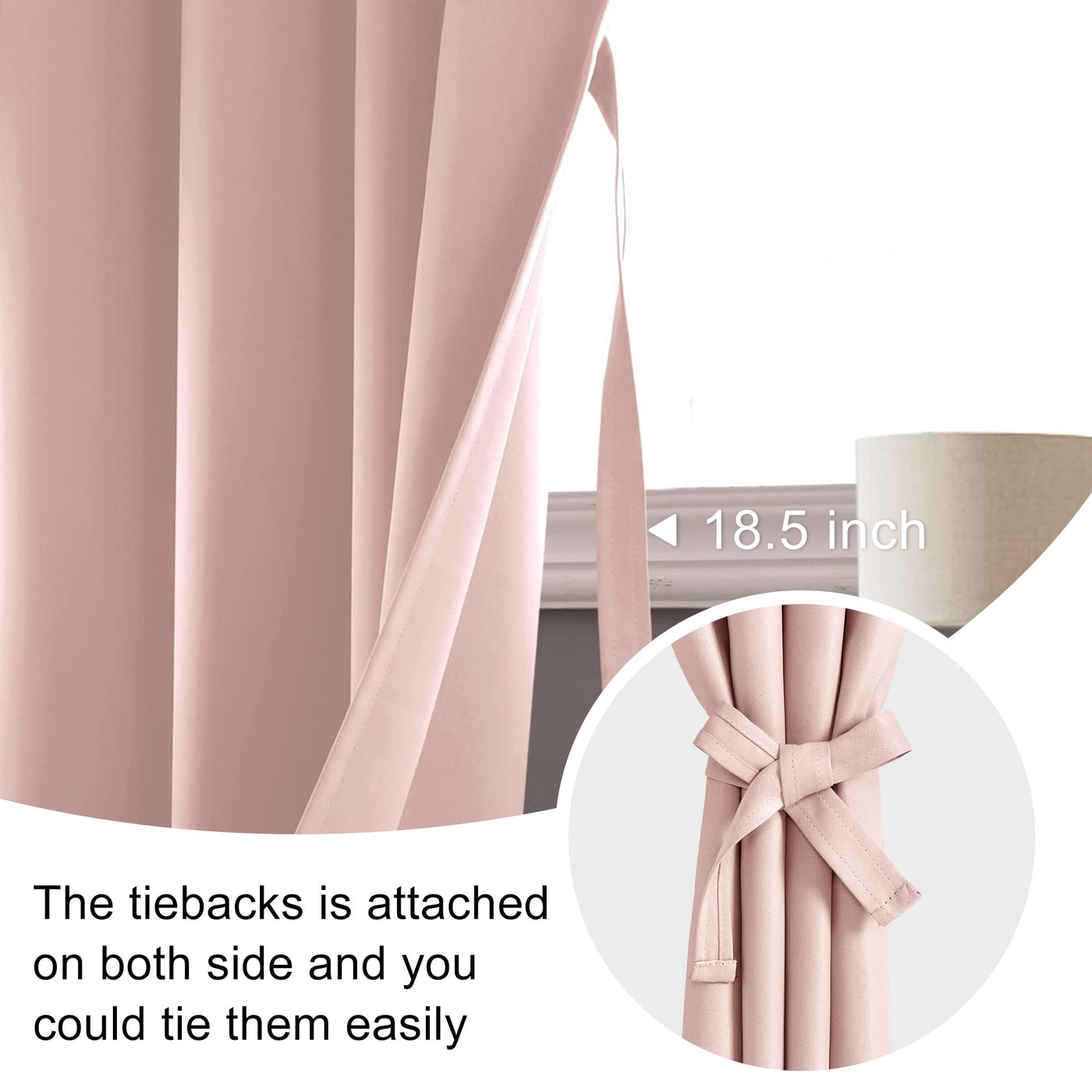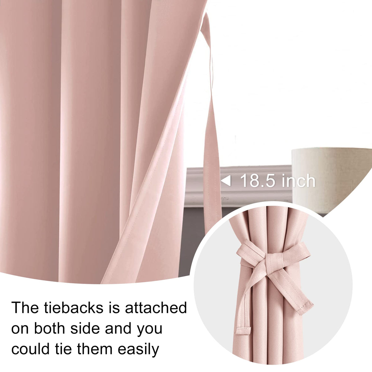 JIUZHEN Blackout Curtains with Tiebacks are made of premium quality triple weaved microfiber blackout fabric which can block most of harmful sunlights and UV rays. Our room darkening curtains adopt an innovative design. The tiebacks are stitched to the curtains and combined with the curtains, thereby reducing your additional cost of purchasing tiebacks and eliminating the trouble that you sometimes cannot find tiebacks.