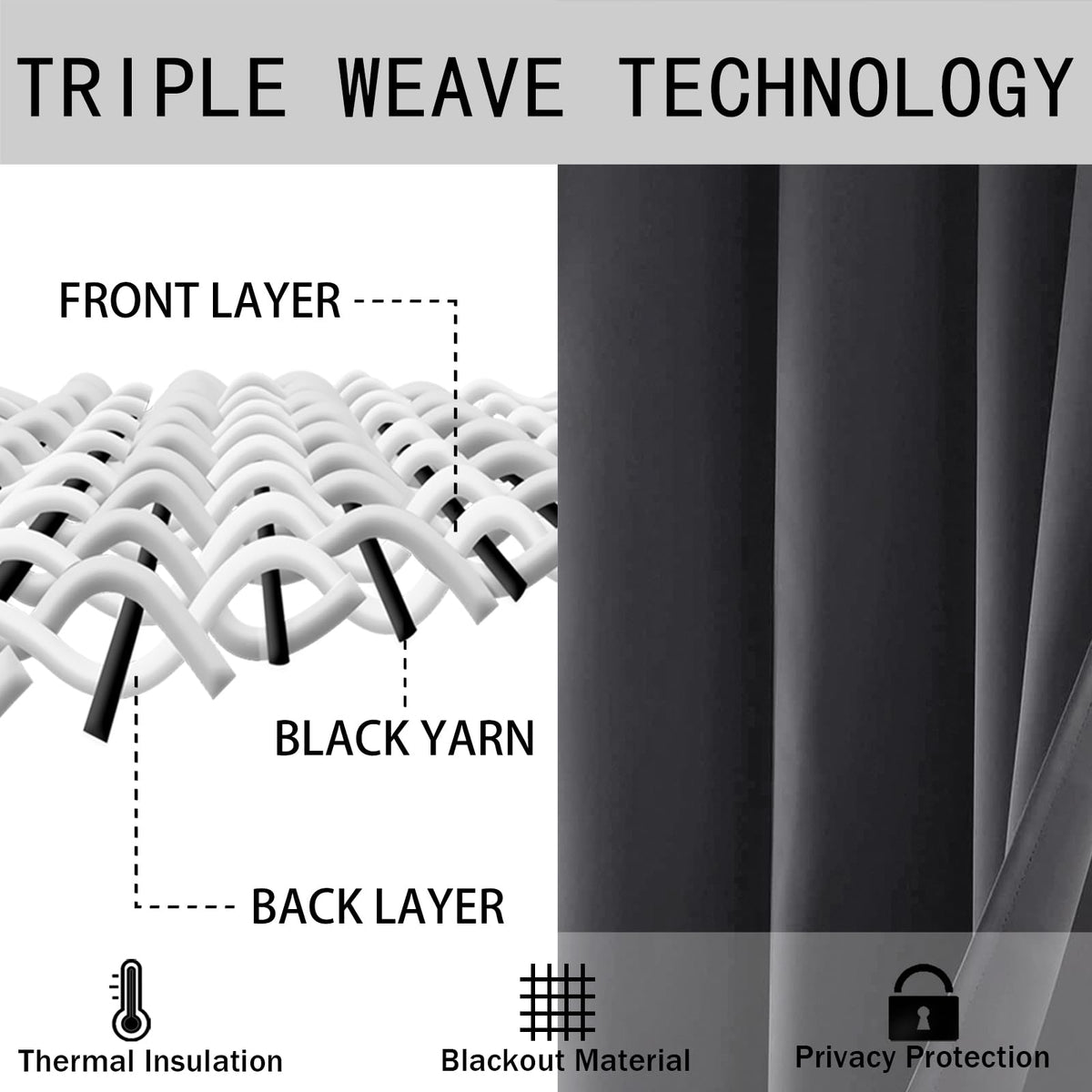 Thermal Insulated & Energy Saving Curtain: Triple weaved technology helps block most of sunlights, Keep you away from the light.