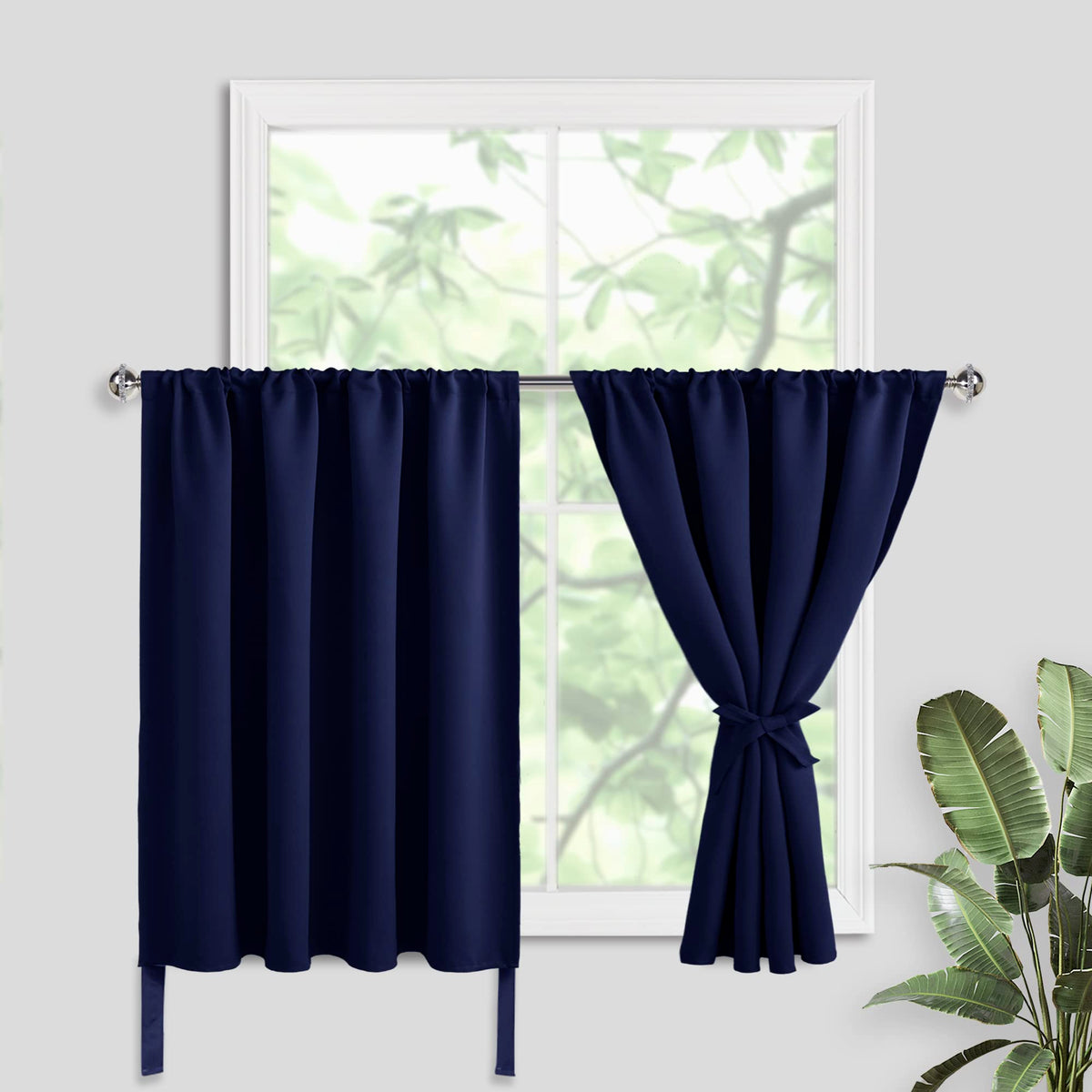 Jiuzhen Short Blackout Curtains For Small Window - Cafe Room Darkening Privacy Thermal Insulated Half Window Curtains Tiers For Bathroom,Kitchen, W 52 X L 36, Set Of 2 Panels With Tiebacks, Navy Blue