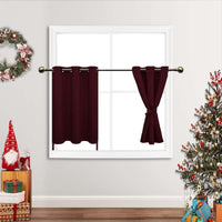 Jiuzhen Short Curtains Kitchen Half Window Blackout Curtains With Tiebacks For Baseroom Shadows, Grommet Curtains For Living Room, Set Of 2 Window Curtain Panels, 42 X 30 Inch Length,Burgundy