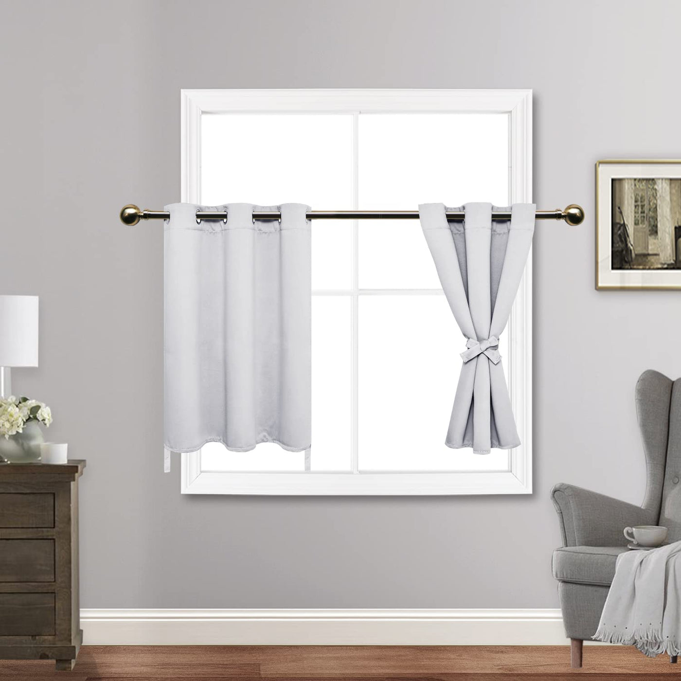 Jiuzhen Short Curtains Kitchen Half Window Blackout Curtains With Tiebacks For Baseroom Shadows, Grommet Curtains For Living Room, Set Of 2 Window Curtain Panels, 42 X 30 Inch Length, Greyish White