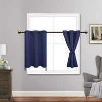 Jiuzhen Short Curtains Kitchen Half Window Blackout Curtains With Tiebacks For Baseroom Shadows, Grommet Curtains For Living Room, Set Of 2 Window Curtain Panels, 42 X 30 Inch Length,Navy Blue