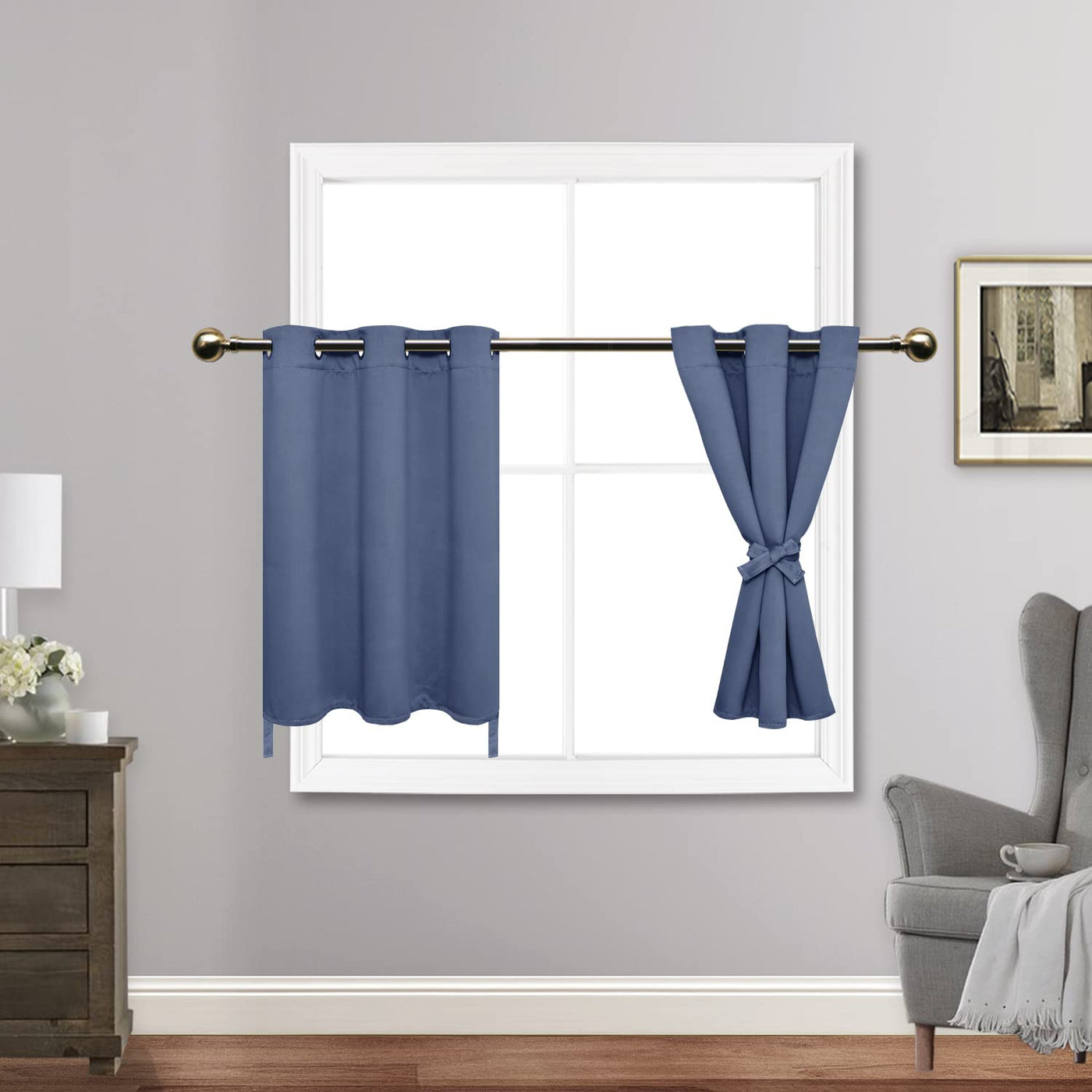 Jiuzhen Short Curtains Kitchen Half Window Blackout Curtains With Tiebacks For Baseroom Shadows, Grommet Curtains For Living Room, Set Of 2 Window Curtain Panels, 42 X 36 Inch Length,Dusty Blue