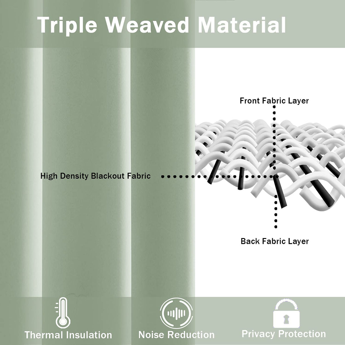 Thermal Insulated & Energy Saving Curtain: Triple weaved technology helps block most of sunlights, Keep you away from the light.