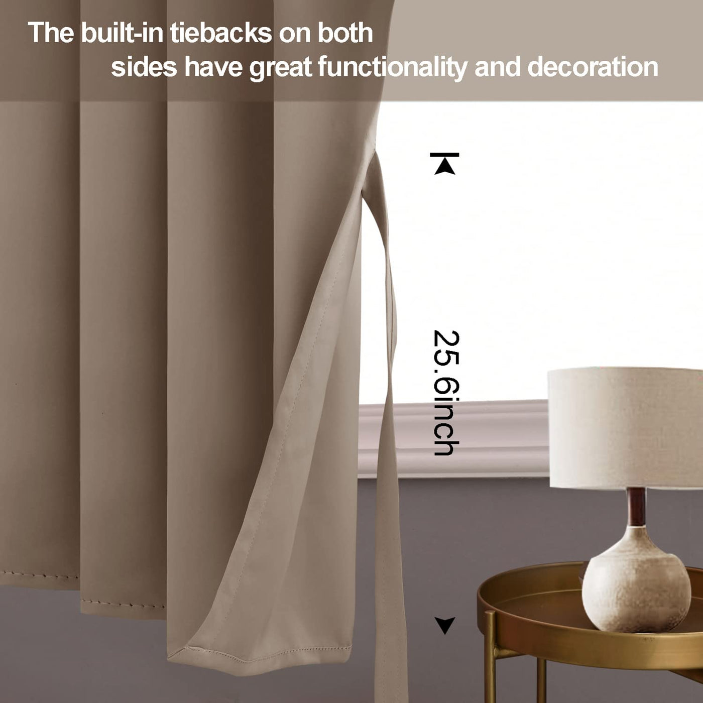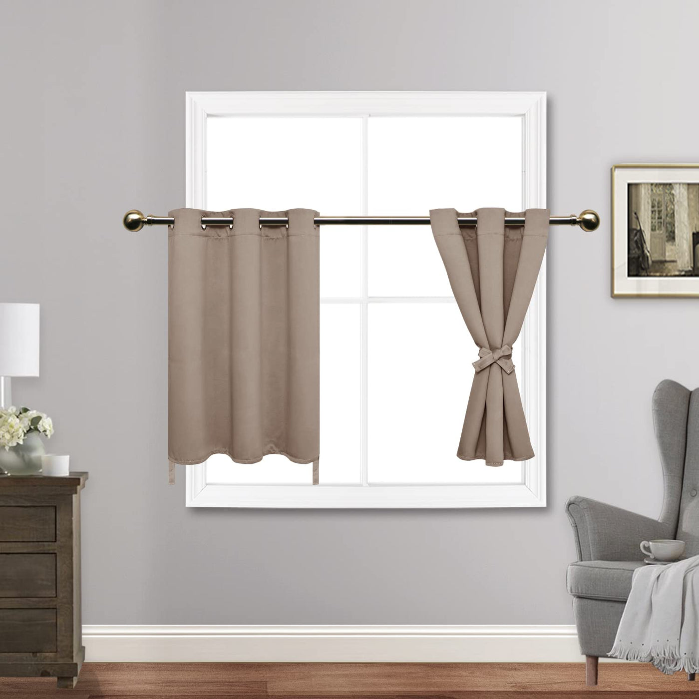 Jiuzhen Short Curtains Kitchen Half Window Blackout Curtains With Tiebacks For Baseroom Shadows, Grommet Curtains For Living Room, Set Of 2 Window Curtain Panels, 42 X 36 Inch Length,Taupe