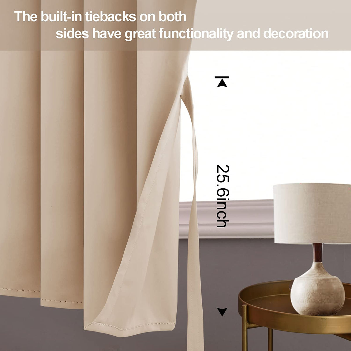 Jiuzhen Short Curtains Kitchen Half Window Blackout Curtains With Tiebacks For Baseroom Shadows, Grommet Curtains For Living Room, Set Of 2 Window Curtain Panels, 52 X 30 Inch Length,Beige