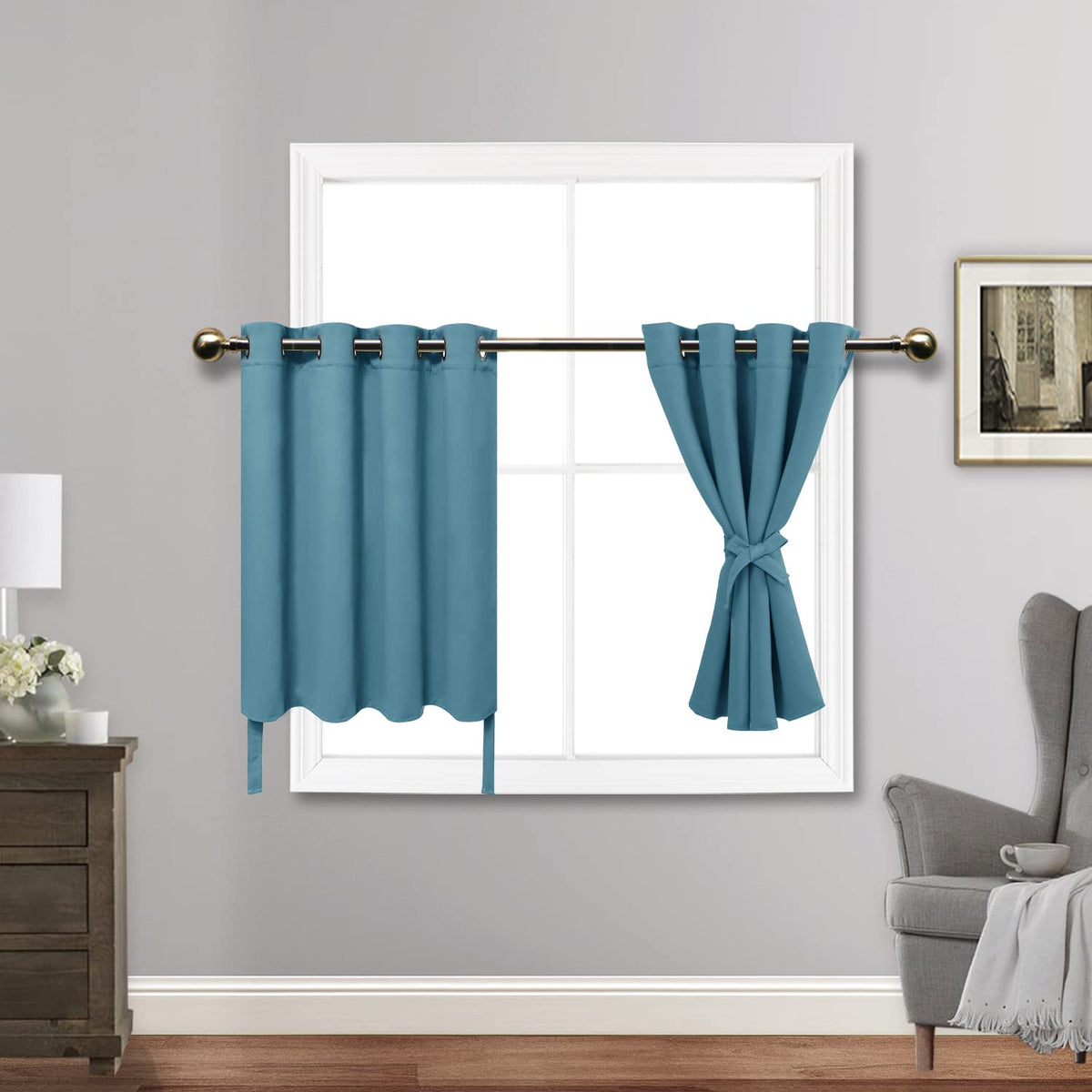 Jiuzhen Short Curtains Kitchen Half Window Blackout Curtains With Tiebacks For Baseroom Shadows, Grommet Curtains For Living Room, Set Of 2 Window Curtain Panels, 52 X 30 Inch Length,Turquoise
