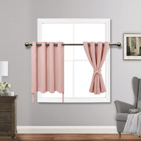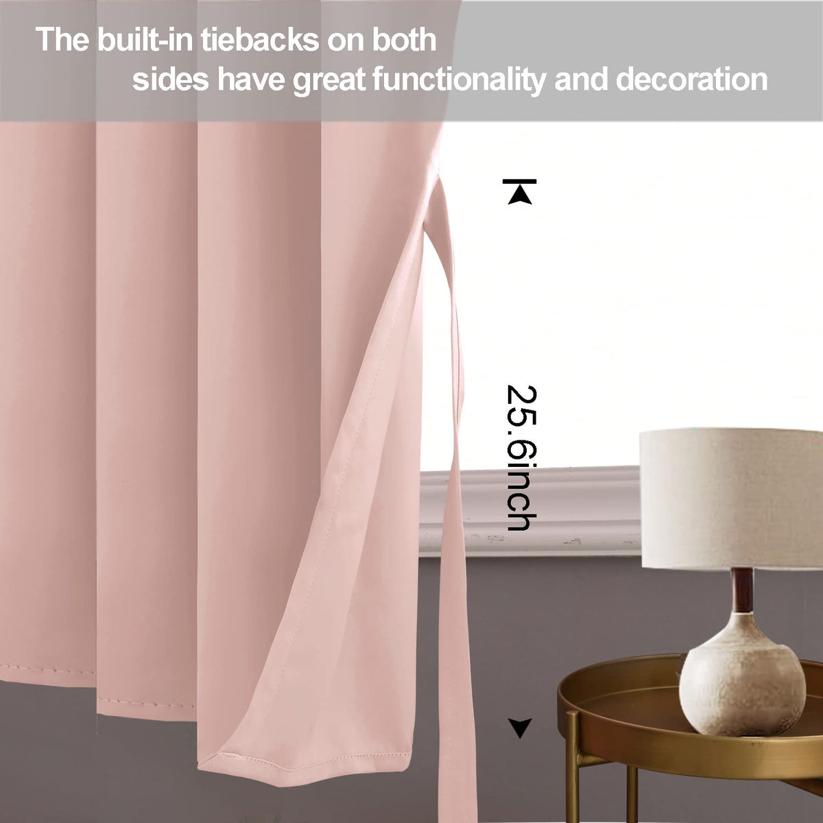 Jiuzhen Short Curtains Kitchen Half Window Blackout Curtains With Tiebacks For Baseroom Shadows, Grommet Curtains For Living Room, Set Of 2 Window Curtain Panels, 52 X 36 Inch Length,Blush Pink