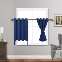 Jiuzhen Short Curtains Kitchen Half Window Blackout Curtains With Tiebacks For Baseroom Shadows, Grommet Curtains For Living Room, Set Of 2 Window Curtain Panels, 52 X 36 Inch Length,Classic Blue