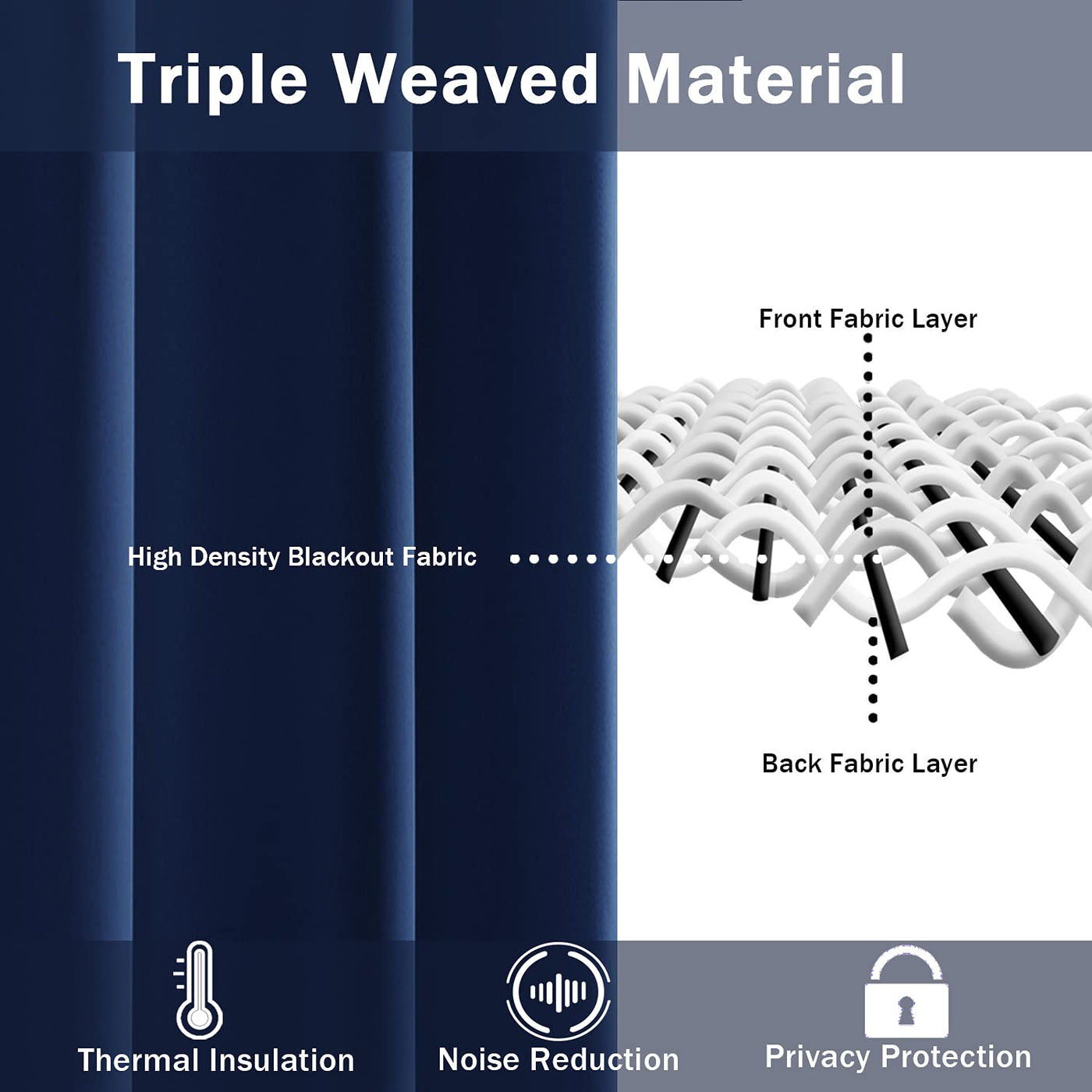 Thermal Insulated & Energy Saving Curtain: Triple weaved technology helps block most of sunlights, Keep you away from the light.