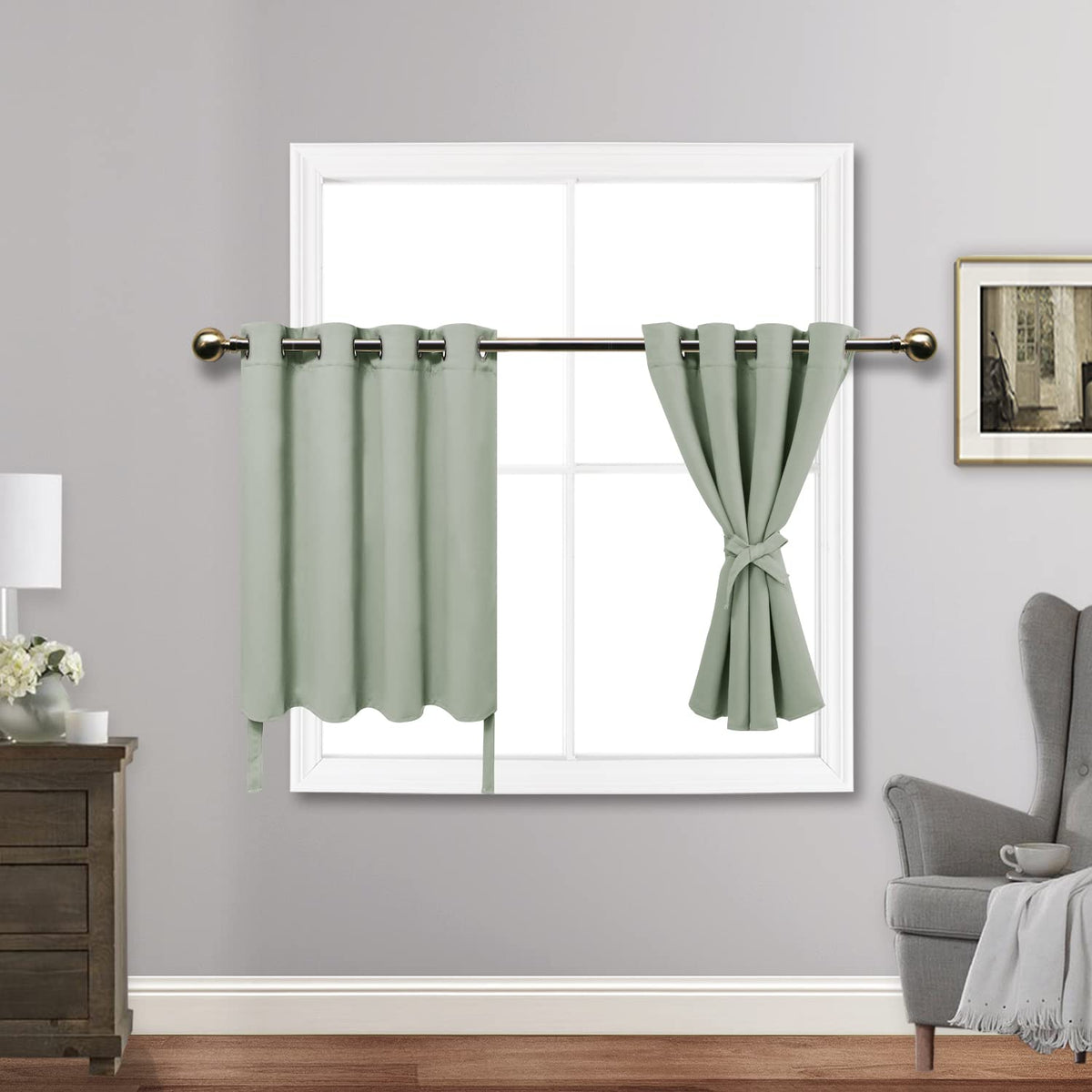Jiuzhen Short Curtains Kitchen Half Window Blackout Curtains With Tiebacks For Baseroom Shadows, Grommet Curtains For Living Room, Set Of 2 Window Curtain Panels, 52 X 36 Inch Length,Light Green