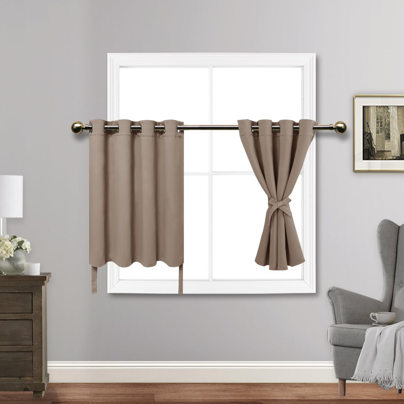 Jiuzhen Short Curtains Kitchen Half Window Blackout Curtains With Tiebacks For Baseroom Shadows, Grommet Curtains For Living Room, Set Of 2 Window Curtain Panels, 52 X 36 Inch Length,Taupe