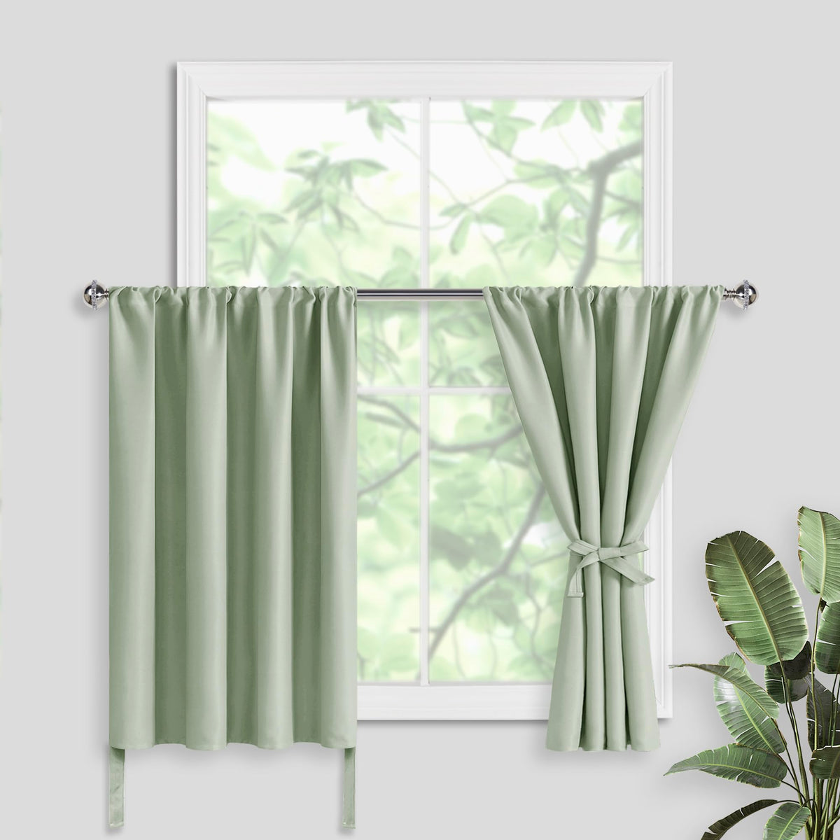 Jiuzhen Short Curtains With 2 Tiebacks - 42' X 30' Valance Curtain Tiers For Small Windows - Thermal Room Darkening Curtains 2 Panels, Rod Pocket Curtains For Bedroom, Bathroom, Kitchen, Light Green