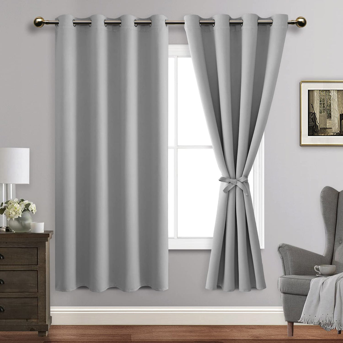 Jiuzhen Silver Grey Blackout Curtains With Tiebacks-Thermal Insulated, Light Blocking And Noise Reducing Grommet Curtain Drapes For Bedroom And Living Room, Set Of 2 Curtain Panels, 52X63 Inch Length