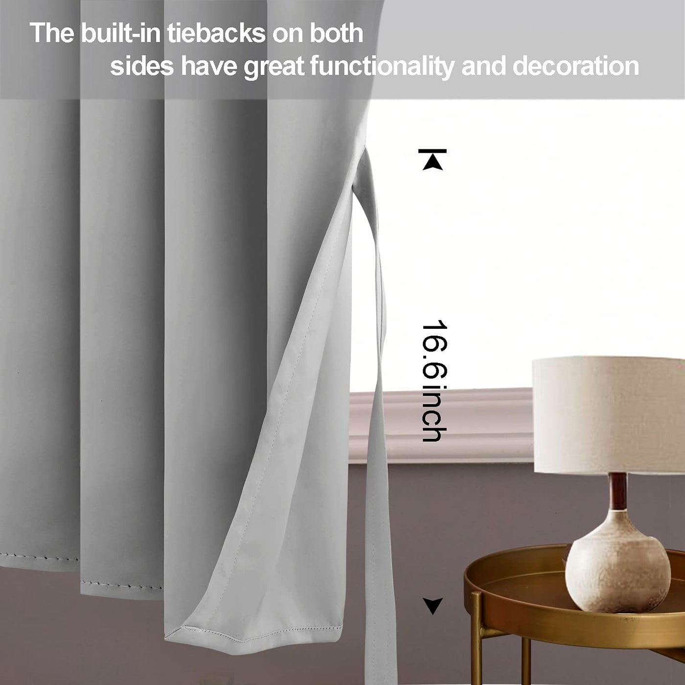 Jiuzhen Silver Grey Blackout Curtains With Tiebacks Thermal Insulated, Light Blocking And Noise Reducing Grommet Curtains For And Living Room, Set Of 2 Window Curtain Panels, 34 X 24 Inch Length