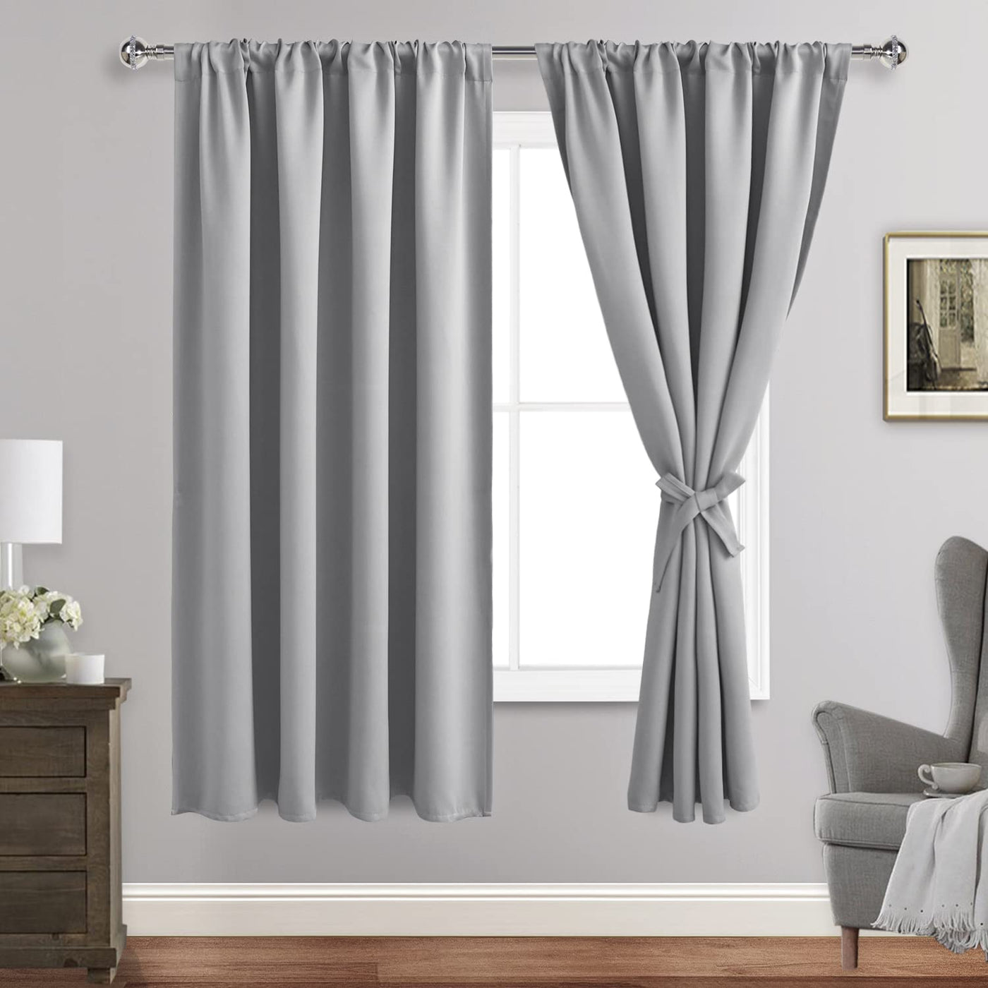 Jiuzhen Silver Grey Curtains For Bedroom - Thermal Insulated Blackout Curtains With Tiebacks 2 Panels, Room Darkening Rod Pocket Curtains For Living Room, 52 X 72 Inch Length