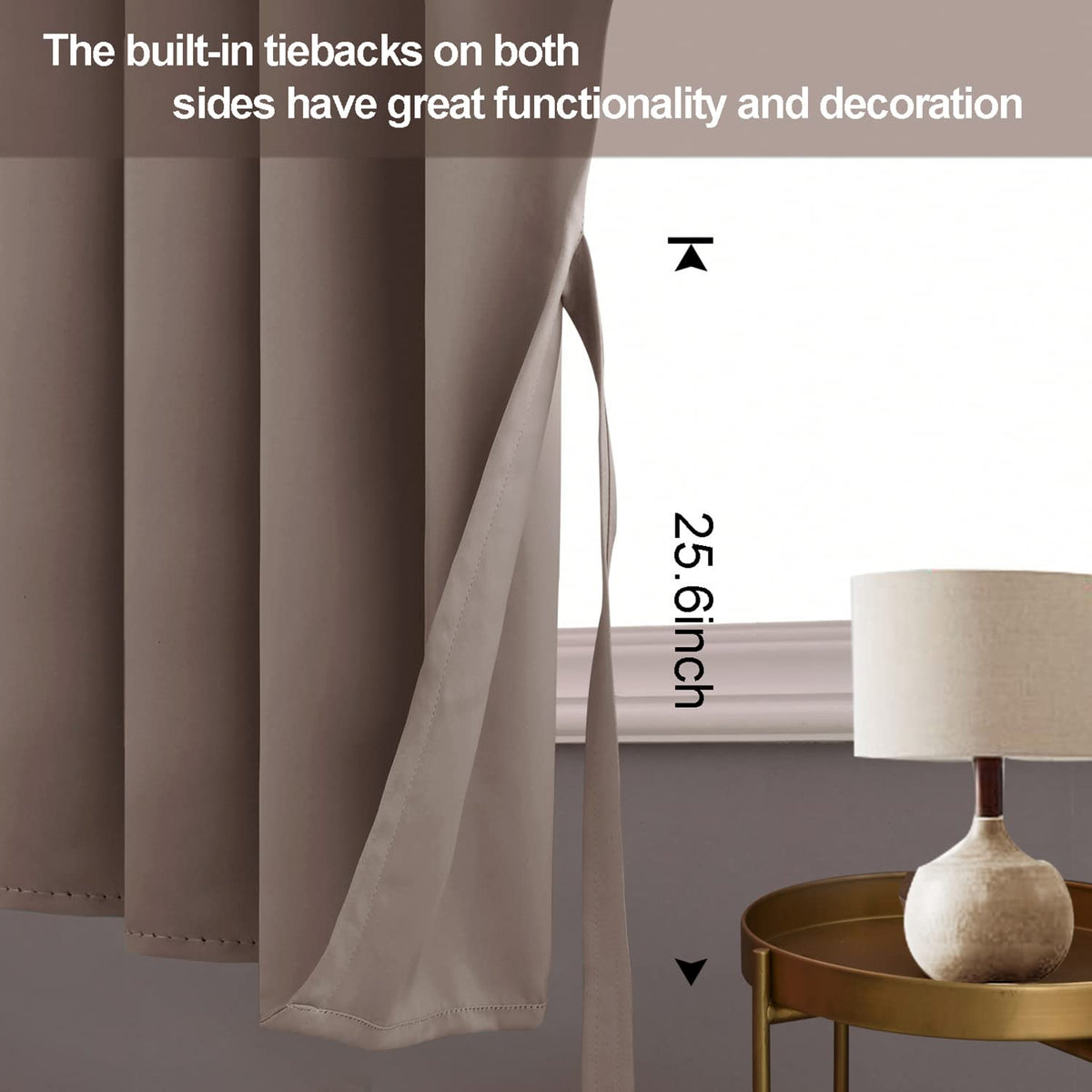 Jiuzhen Tan Blackout Curtains With Tiebacks - Thermal Insulated, Light Blocking And Noise Reducing Grommet Curtains For Bedroom And Living Room, Set Of 2 Window Curtain Panels, 42 X 45 Inch Length