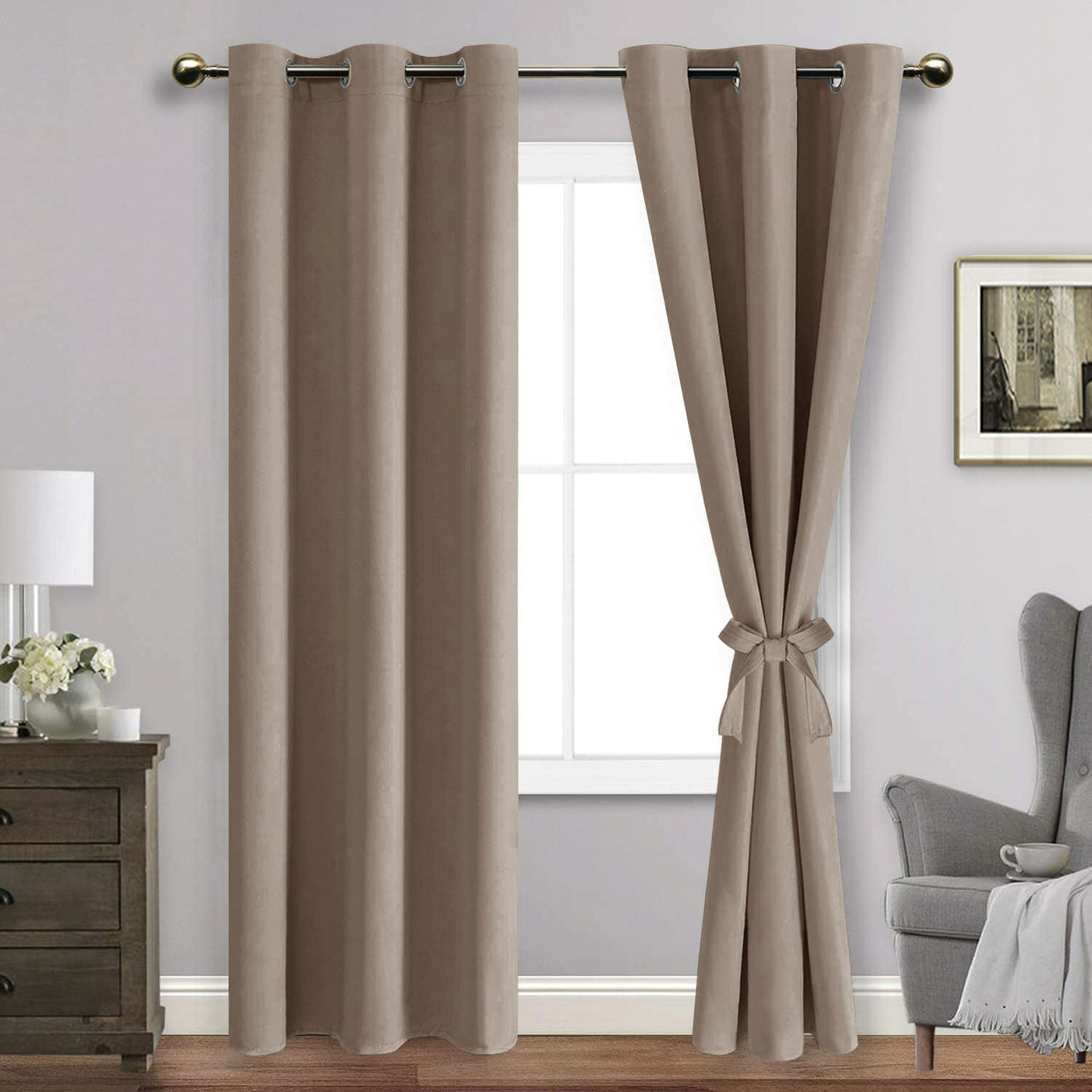 Jiuzhen Taupe Blackout Curtains With Tiebacks - Thermal Insulated, Light Blocking And Noise Reducing Grommet Curtains For Bedroom And Living Room, Set Of 2 Window Curtain Panels, 42 X 84 Inch Length
