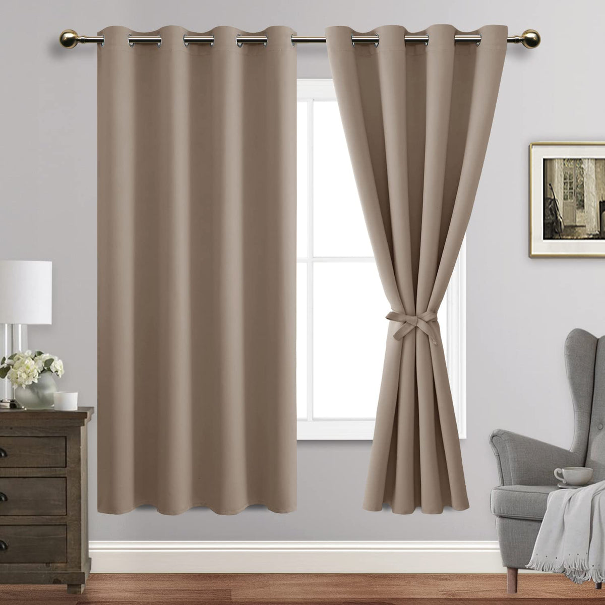 Jiuzhen Taupe Blackout Curtains With Tiebacks - Thermal Insulated, Light Blocking And Noise Reducing Grommet Curtains For Bedroom And Living Room, Set Of 2 Window Curtain Panels, 52 X 63 Inch Length