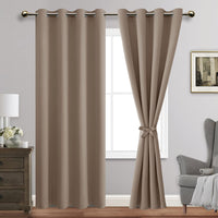 Jiuzhen Taupe Blackout Curtains With Tiebacks - Thermal Insulated, Light Blocking And Noise Reducing Grommet Curtains For Bedroom And Living Room, Set Of 2 Window Curtain Panels, 52 X 84 Inch Length