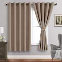 Jiuzhen Taupe Blackout Curtains With Tiebacks - Thermal Insulated, Light Blocking And Noise Reducing Grommet Curtains For Bedroom And Living Room, Set Of 2 Window Curtain Panels, 60 X 63 Inch Length