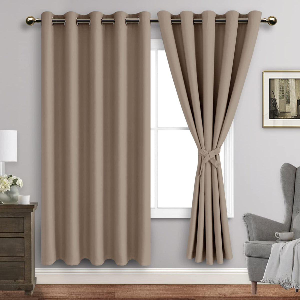Jiuzhen Taupe Blackout Curtains With Tiebacks - Thermal Insulated, Light Blocking And Noise Reducing Grommet Curtains For Bedroom And Living Room, Set Of 2 Window Curtain Panels, 60 X 72 Inch Length