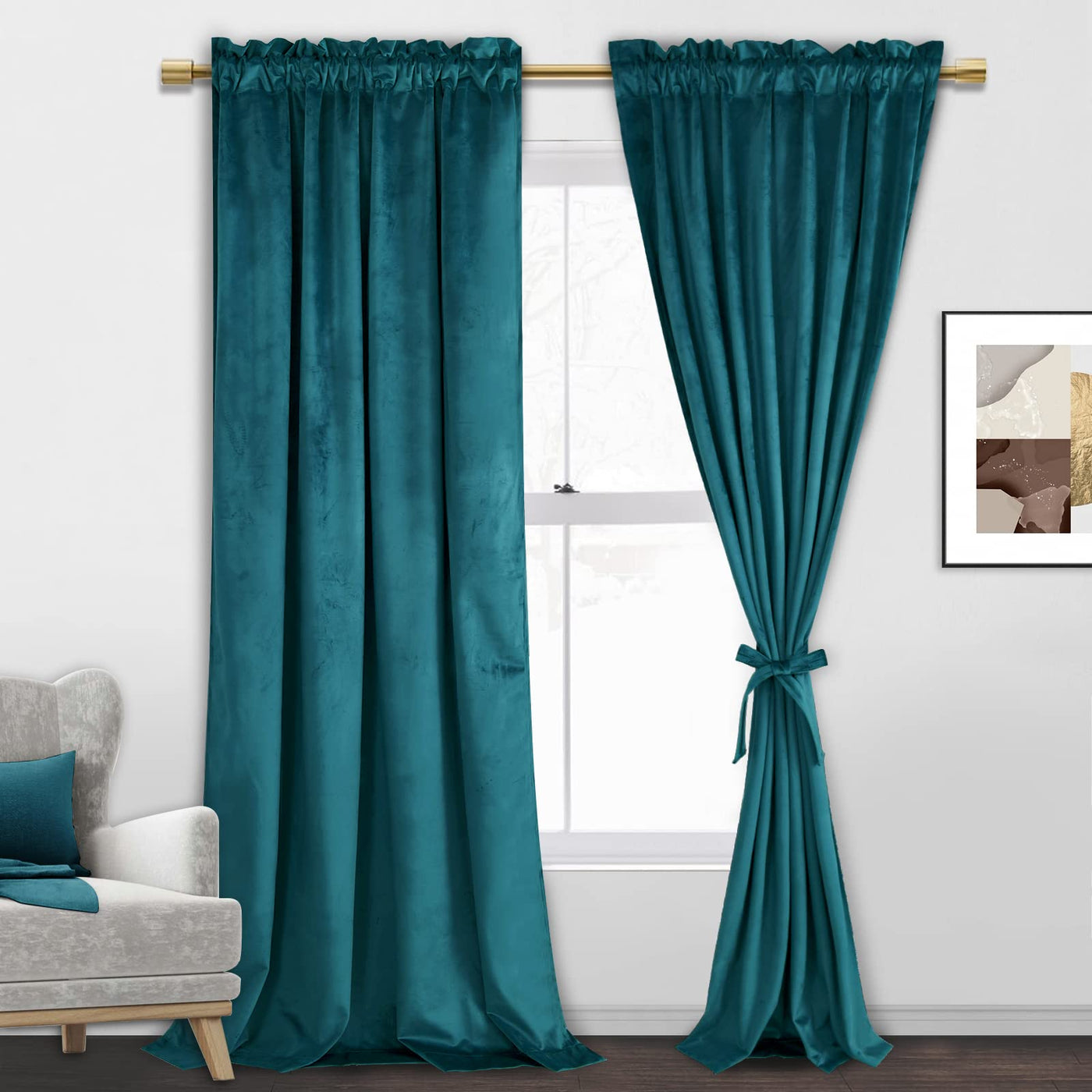Jiuzhen Teal Velvet Curtains 84 Inch Length For Bedroom Blackout Thermal Insulated Room Darkening Rod Pocket Drapes, Set Of 2 Pa