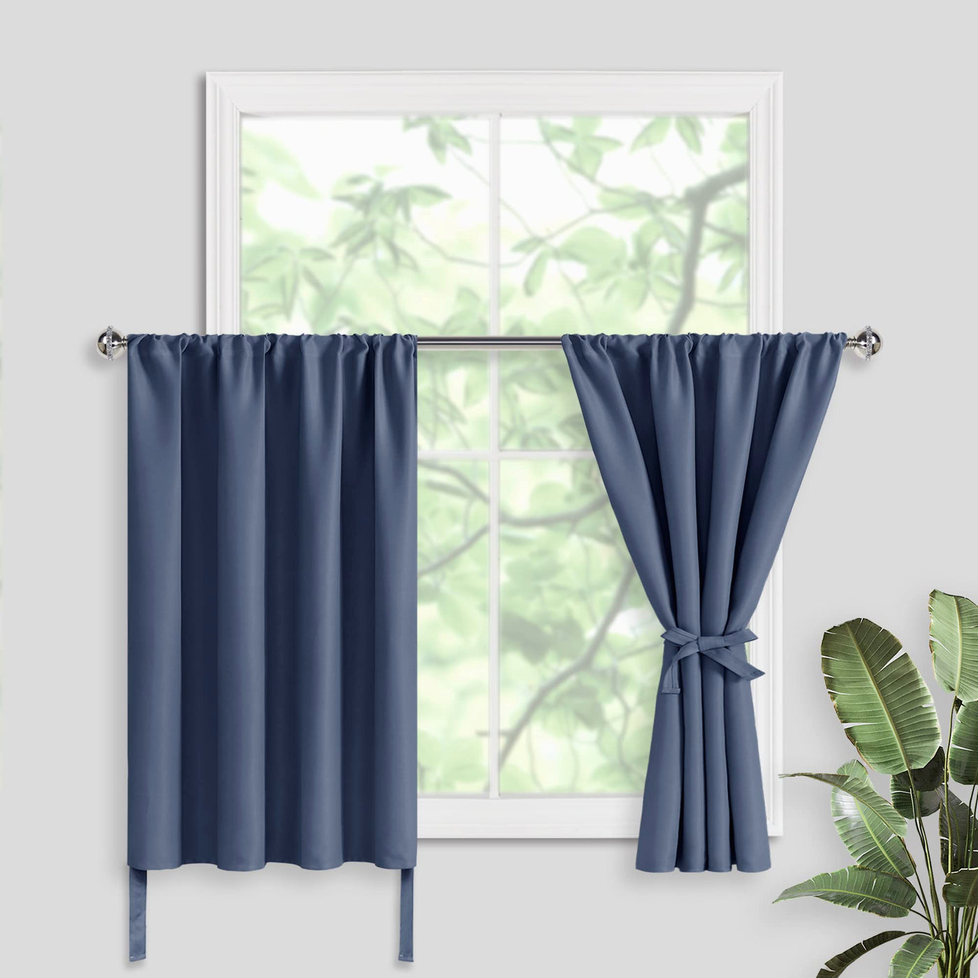 Jiuzhen Tier Curtains 36 Inch Length With 2 Tiebacks, Kitchen Half Window Privacy Curtain Tiers For Windows/Bathroom Shades, Thermal Insulated Room Darkeing Curtain 2 Panels, 42' X 36', Dusty Blue