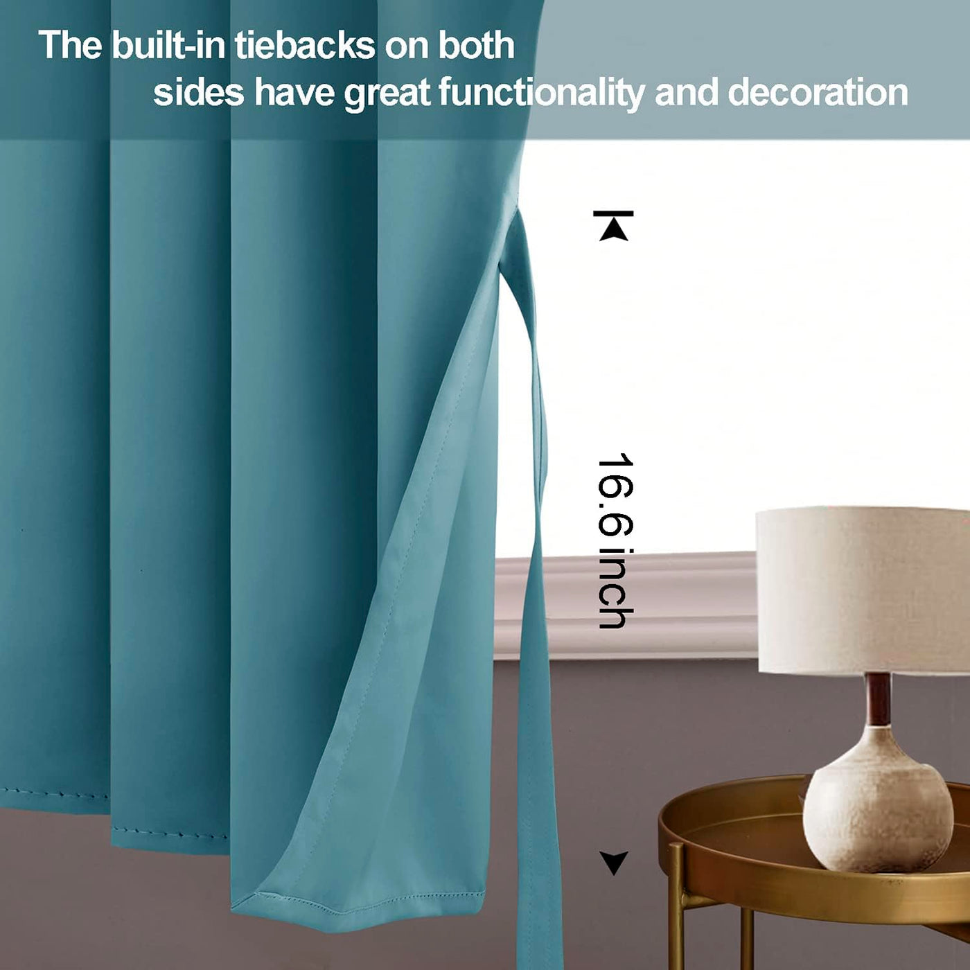 Jiuzhen Turquoise Blackout Curtains With Tiebacks Thermal Insulated, Light Blocking And Noise Reducing Grommet Curtains For Bedroom And Living Room, Set Of 2 Window Curtain Panels, 34 X 24 Inch Length
