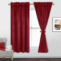 Jiuzhen Wine Red Velvet Curtains 63 Inches For Living Room - Privacy Protect Room Darkening Rod Pocket Thick Velvet Window Drape