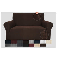 Jiviner High Stretch 1-Piece Jacquard Small Checks Couch Covers For 2 Cushion Couch Anti Slip Love Seat Sofa Covers Loveseat Slipcovers Protector For Kids Pets (Loveseat, Coffee)