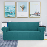 Jiviner High Stretch Couch Covers For 3 Cushion Couch 1-Piece Jacquard Elastic Sofa Slipcovers Anti Slip Sofa Cover With Elastic Bottom Furniture Protector For Kids Pets (Sofa, Blakish Green)