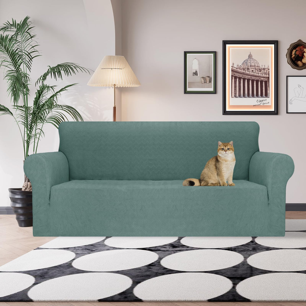 Jiviner Stretch Sofa Covers 1 Piece Couch Covers For 3 Cushion Couch Sofa, 3 Seater Sofa Slipcovers Furniture Protector With Elastic Bottom For Kids, Pets (Pea Green, Sofa)